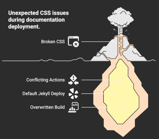 The catch was when GitHub’s default Pages deploy ran first, it served our VitePress site without any CSS. Completely styleless. Then, when our GitHub Action ran after it, it deployed the styled version. That’s why it sometimes looked fine and we were racing against GitHub’s own deploy job. and yep, GitHub’s deploy was using Jekyll under the hood, even though we had no .nojekyll file in the repo. Classic Pages behavior.