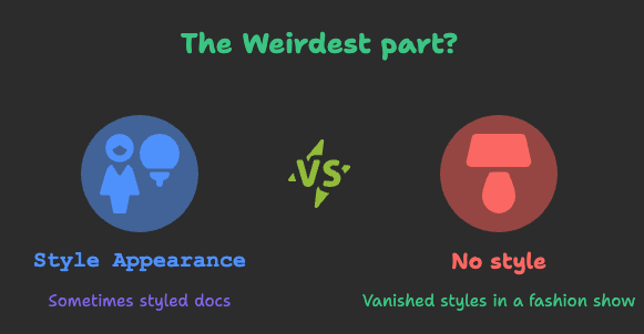 When we first got the docs live, something felt off. They loaded, but with zero CSS. No layout, no colors, just raw text sitting on the screen. Technically the site was working, but let’s be honest, it was unusable.